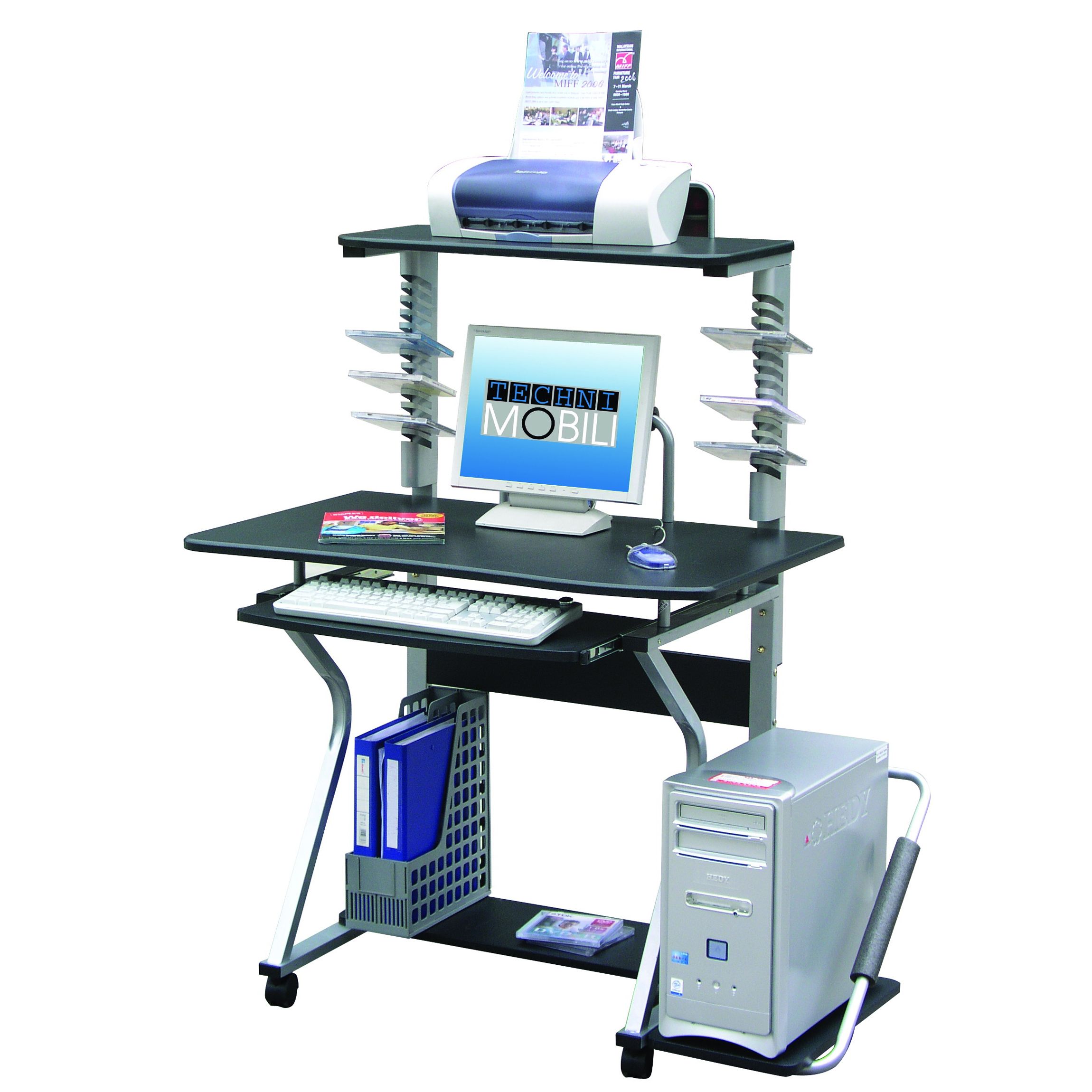 Techni Mobili - Computer Desks - RTA2350BGPH06 - This Techni Mobili Multifunction Mobile Workstation is an all-in-one space-saving computer desk with many great features including carpet coasters that allow for easy movement, a slide-out keyboard shelf equipped with a safety stop, a lower shelf, a side mounted CPU storage shelf with protective bar, and a 26-slot media rack built in to the upper shelf. It is made of heavy-duty engineered wood panels with a moisture resistant PVC laminate veneer and a scratch-resistant powder-coated steel frame. Multifunction DeskProduct main weight capacity: 80 lbs. Product main shelf weight capacity: 30 lbs. Product keyboard shelf weight capacity: 30 lbs. Product Secondary Shelf Weight Capacity: 30 lbs. Product CPU Caddy Weight Capacity: 30 lbs.5 Year Limited WarrantySpecifications: Overall product dimensions: 52 H x 41.25 W x 22 DProduct net weight: 47 lbs.